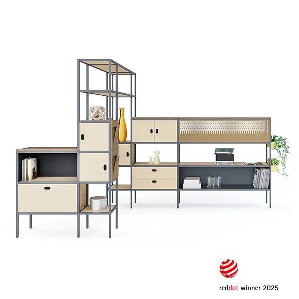 Das Raumteil- und Regalsystem für maximale Wandlungsfähigkeit in der Büroeinrichtung.